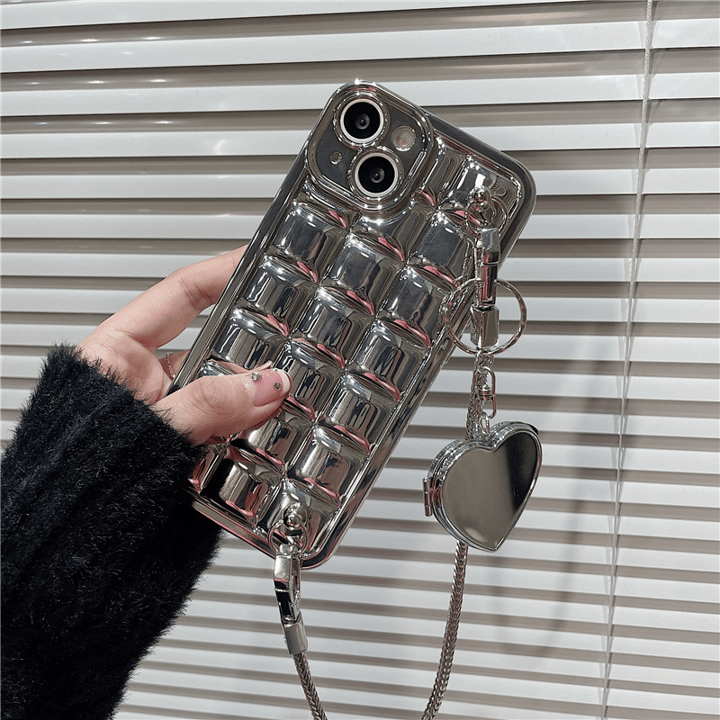 Plating 3D Plaid Phone Case with Heart Mirror