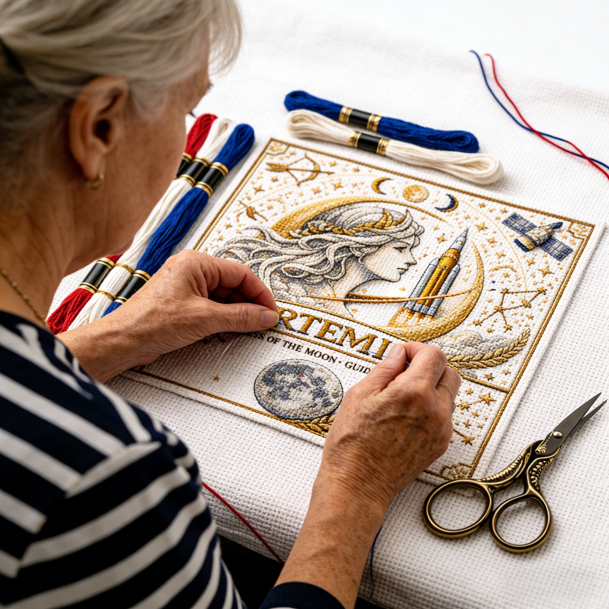 This Artemis Cross Stitch Kit brings together ancient mythology and modern space exploration—